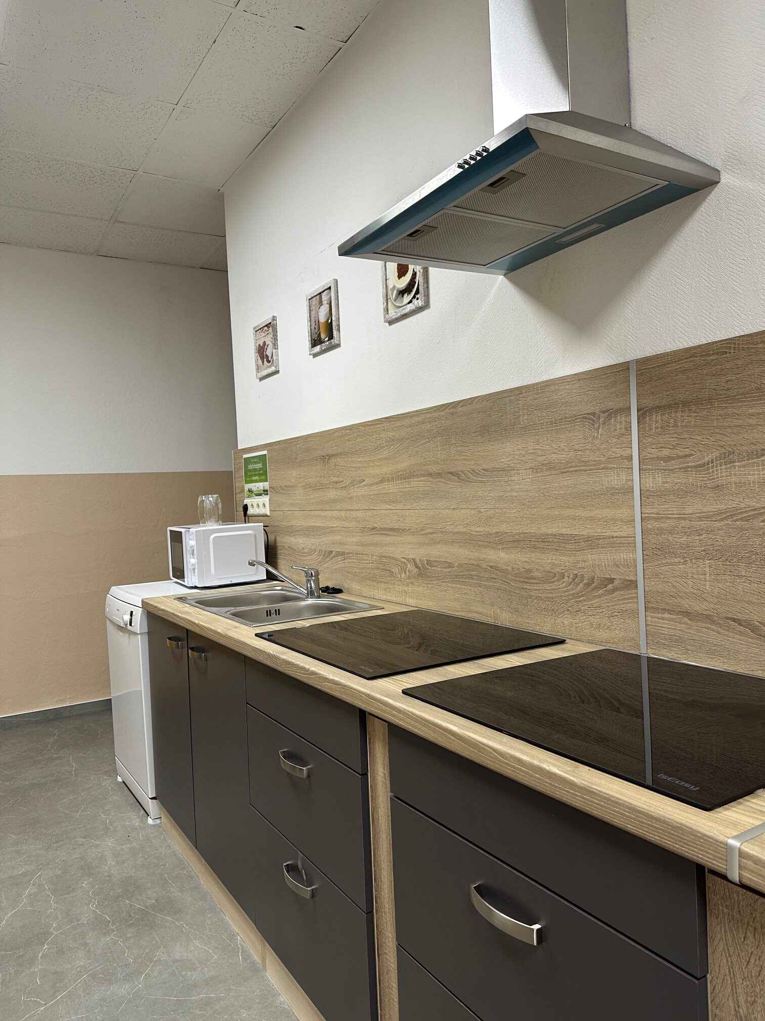 Jedes Zimmer ist mit einem eigenen Badezimmer inklusive WC und Dusche ausgestattet und sorgt so für ausreichend Privatsphäre. Für die Selbstversorgung steht eine Gemeinschaftsküche zur Verfügung, die mit Kochmöglichkeiten, Kühlschränken und Mikrowellen bestens eingerichtet ist. Zusätzlich gibt es einen Waschraum mit Waschmaschine und Trockner, sodass auch längere Aufenthalte problemlos möglich sind. WLAN ist im gesamten Haus vorhanden.
