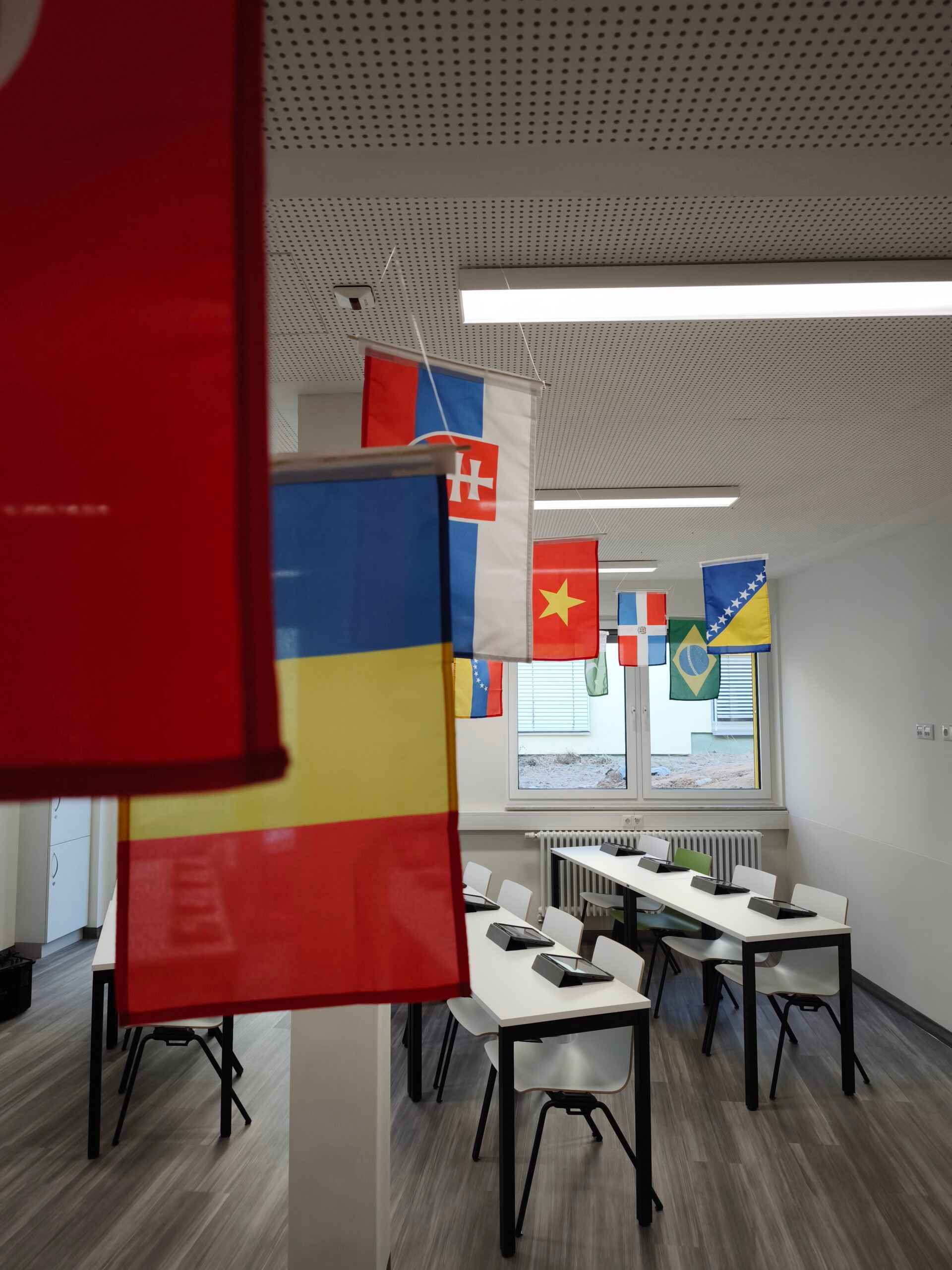 In dem Schulgebäude befinden sich drei Klassenzimmer und ein großer Hörsaal. Zwei weitere Unterrichtsräume sowie ein Hörsaal stehen im angrenzenden Nachbargebäude zur Verfügung. Alle Räumlichkeiten der Schule sind mit modernster Technik, wie interaktiven Whiteboards, Beamer, Presenter und W-Lan ausgestattet, wodurch ein aktiver, kompetenzorientierter Unterricht realisiert werden kann. Für Unterrichtzwecke werden den Lernenden Apple-iPads sowie PC-Arbeitsplätze bereitgestellt.